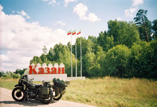 Ein kurzes Telefongespräch über das Handy und auf einem Chopper aus M-72, in Leder und Stirnband voller Buchstaben A (von Anarchy) flog Dima an. Nach 10 Minuten erfuhr ich, dass das Motorrad morgen repariert wird, ich übernachte bei Dima und am Abend sehen wir Kazan by night.